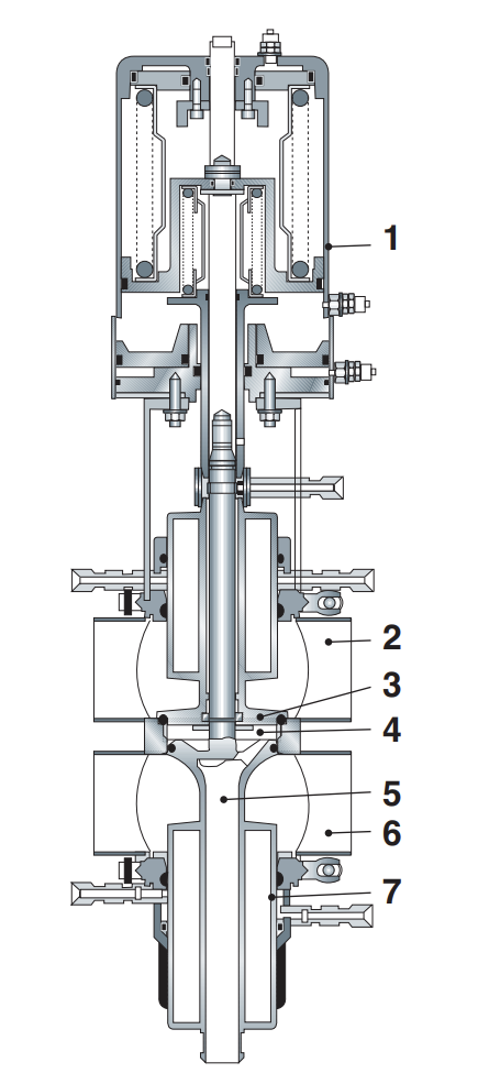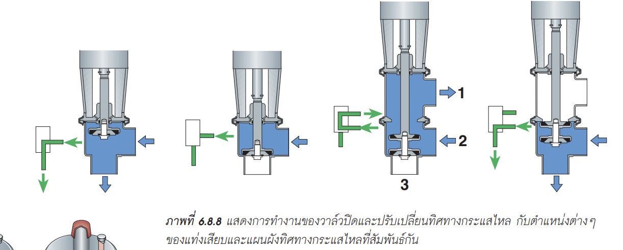 เมื่อมีการเปิดวาล์ว ห้องถ่ายทิ้งจะถูกปิด ทำให้ผลิตภัณฑ์ไหลจากเส้นทางหนึ่งไปอีกเส้นทางหนึ่งได้