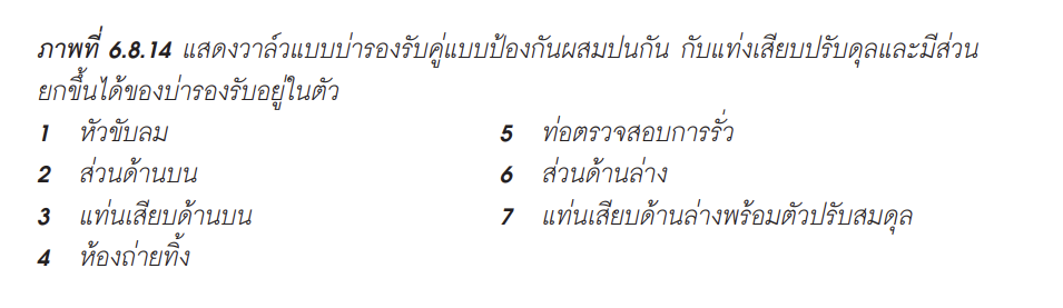 วาล์วแบบป้องกันผสมปนกัน ตามภาพที่ 6.8.15 สามารถเป็นแบบบ่ารองรับแบบเดี่ยวและแบบคู่ แต่เมื่อกล่าวถึง วาล์วแบบป้องกันผสมปนกัน โดยทั่วไปจะเป็นแบบบ่ารองรับแบบคู่ ตามภาพที่ 6.8.14