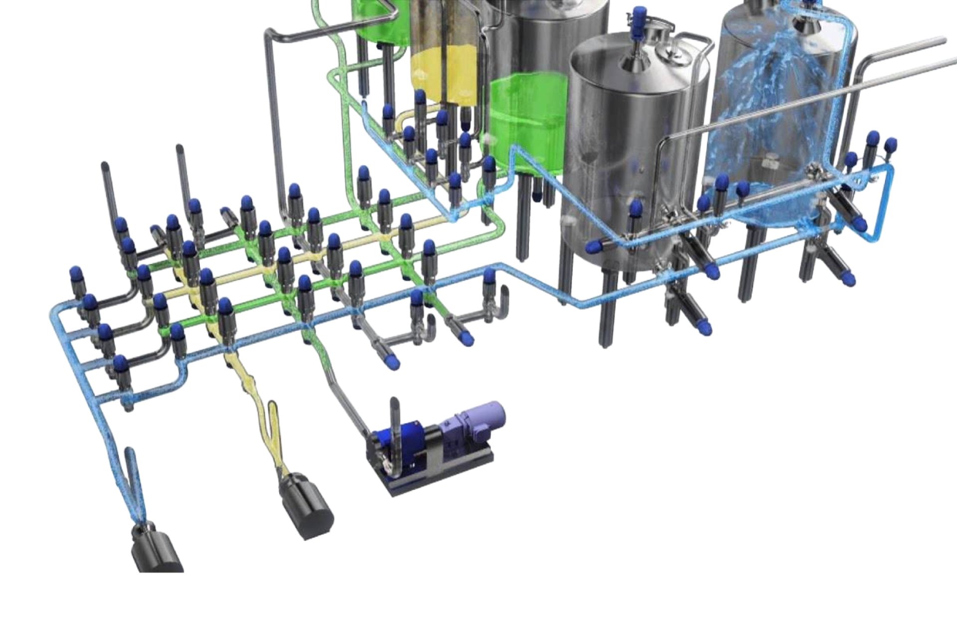 สามารถจัดรวมกลุ่มของวาล์วเพื่อลดการอุดตัน และทำให้เป็นไปได้ที่จะแจกจ่ายผลิตภัณฑ์ ระหว่างส่วนแบ่งทางโครงสร้างต่างๆ ภายในการผลิตนม วาล์วยังสามารถจัดแยกสายทางเดินต่างหากแต่ละสาย เพื่อให้สายหนึ่งสะอาดปลอดภัย ขณะที่ผลิตภัณฑ์กำลังไหลผ่านในสายอื่น