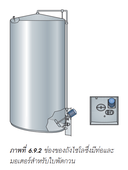 ถังไซโลมีการติดตั้งเครื่องกวน (agitors) หลายแบบรวมทั้งอุปกรณ์ตรวจติดตามและควบคุม