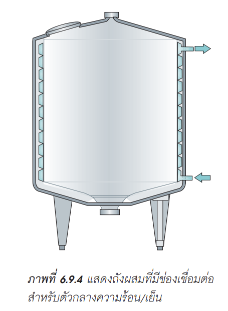 ตามชื่อที่เรียก ถังในรูปแบบนี้ (ภาพที่ 6.9.4) ใช้สำหรับผสมผลิตภัณฑ์ต่างๆ และการผสมส่วนผสมอื่นๆ ในผลิตภัณฑ์ ถังอาจเป็นชนิดที่มีฉนวน หรือมีตัวถังชั้นเดียวเป็นเหล็กสตนเลส อุปกรณ์ควบคุมอุณหภูมิอาจจะติดตั้งไว้ด้วย ถังหุ้มด้วยเส้นใยฉนวนระหว่างชั้นในและชั้นนอก มีช่อง jacket อยู่ภายนอกตัวถังด้านในเพื่อปั๊มให้ตัวกลางความร้อน/ความเย็นผ่าน ช่อง jacket นี้เป็นช่องที่เชื่อมต่อแบบถาวรเครื่องกวนสำหรับถังผสมจะออกแบบให้เหมาะสมกับการใช้งาน