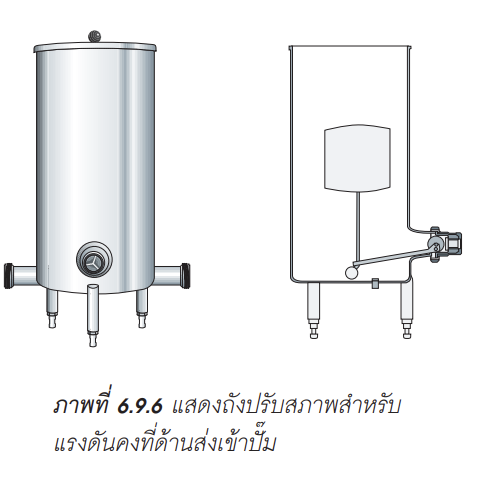 ปัญหาเหล่านี้ มักจะแก้ไขได้โดยติดตั้งถังปรับสภาพในสายการผลิตด้านดูดเข้าของปั๊มถังปรับสภาพจะรักษาระดับผลิตภัณฑ์ให้คงที่เหนือด้านส่งเข้าปั๊ม หรือกล่าวได้ว่าต้องรักษาระดับด้านดูดเข้าปั๊มให้สูงคงที่