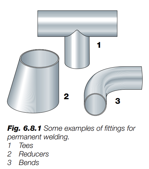 Bends, Tees and similar fittings are available for welding, and with welded unions. In the latter case, the fitting can be ordered with nut or male ends or with clamp fittings.